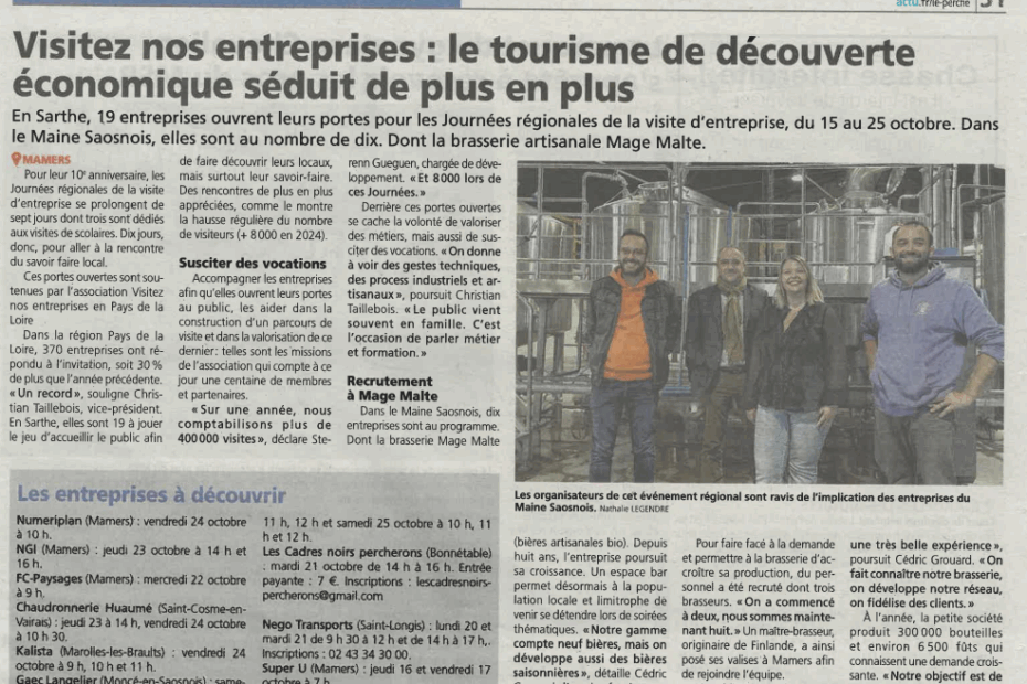 [visitez nos entreprises en Pays de la Loire]: Les entreprises de la Communauté de communes Maine Saosnois se mobilisent pour vous ouvrir leurs portes du… Lire la suite »Les entreprises du Maine Saosnois ouvrent leurs portes